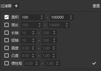 6.斑点过滤器配置如图4所示,用户可以通过这个过滤器过滤不符合标准的斑点,可选的参数有面积、周长等